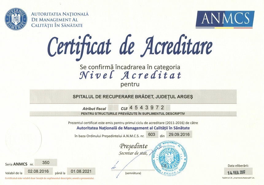 Despre Spitalul de Recuperare Bradet
